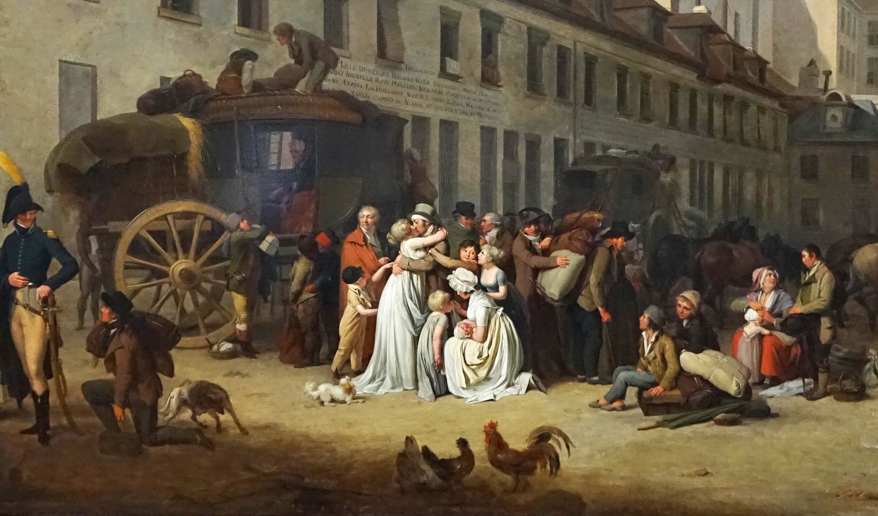 1803 The Arrival of a Stagecoach in the Courtyard of the “Messageries,” rue Notre-Dame-des-Victoires in Paris. (Detail) Louis-Leopold Boilly , Salon of 1804. , Louvre.